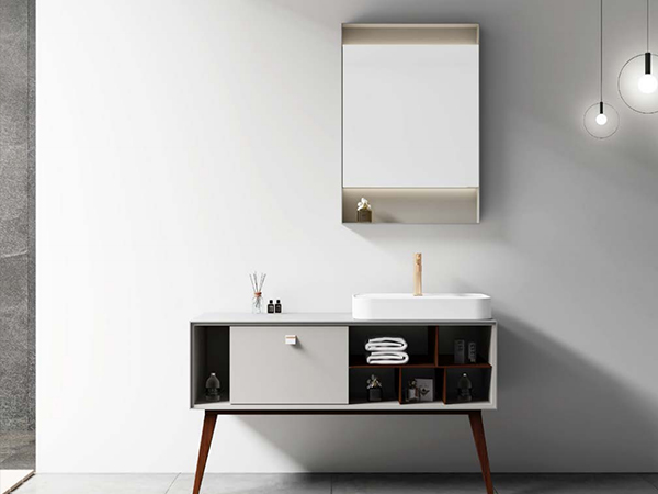 - 鏡柜:柜體外框為 5mm 膚感淺灰納米合金,內鏡柜為